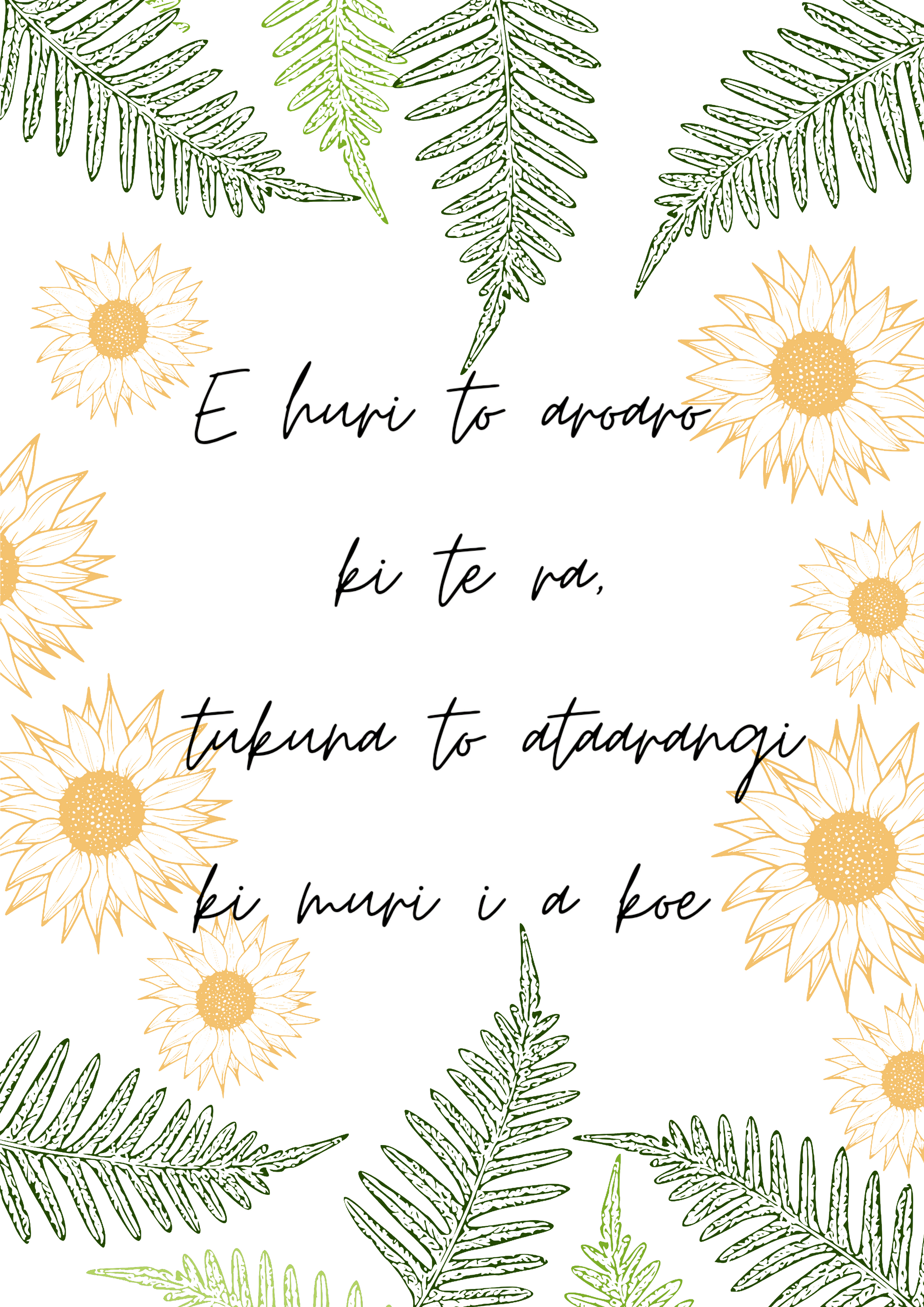 This looks great in a frame & is a whakataukī to remember featuring handdrawn sunflowers & fern fronds