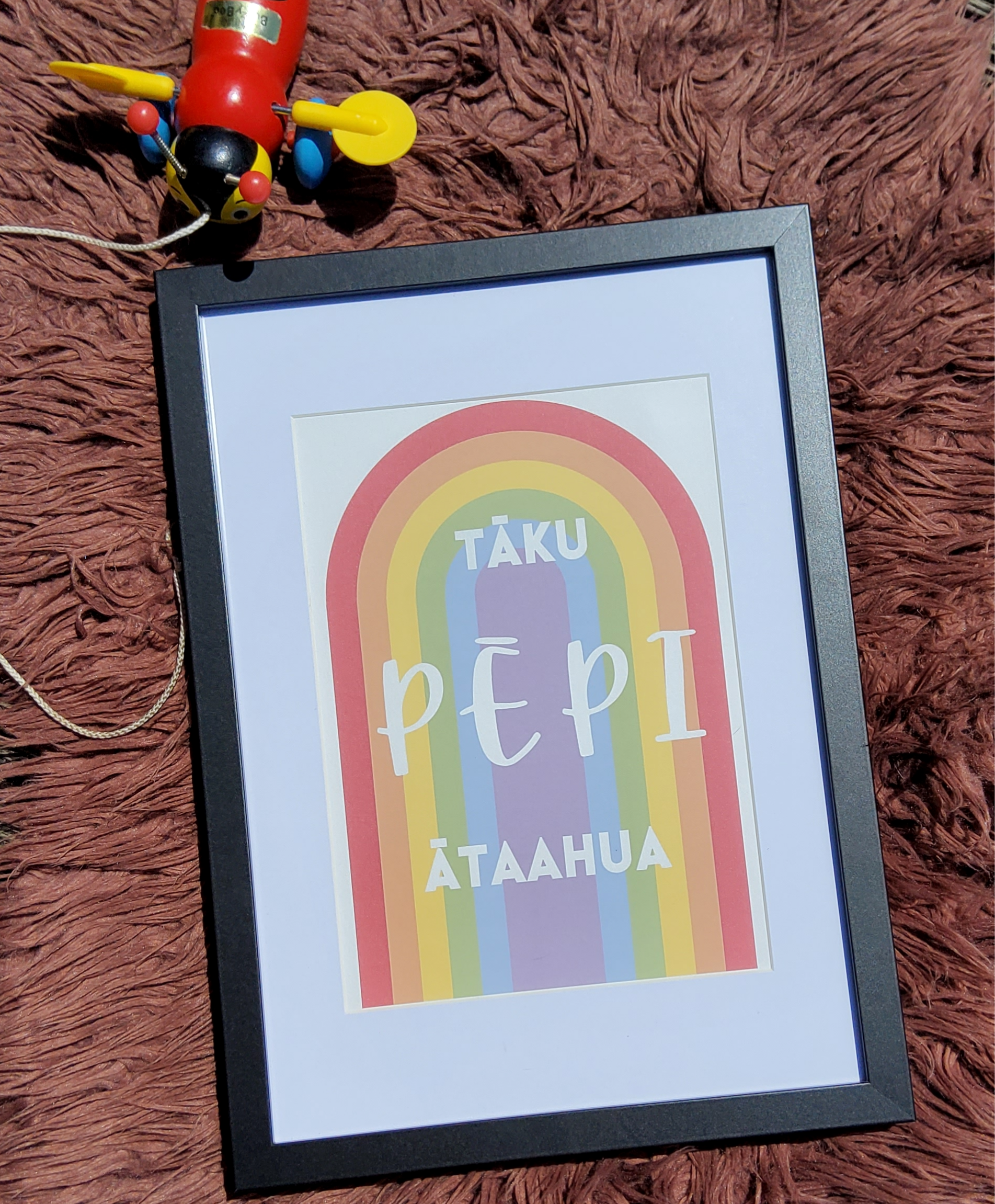 This looks great in a frame & hanging in the nursery, the soft rainbow colors brighten up the room